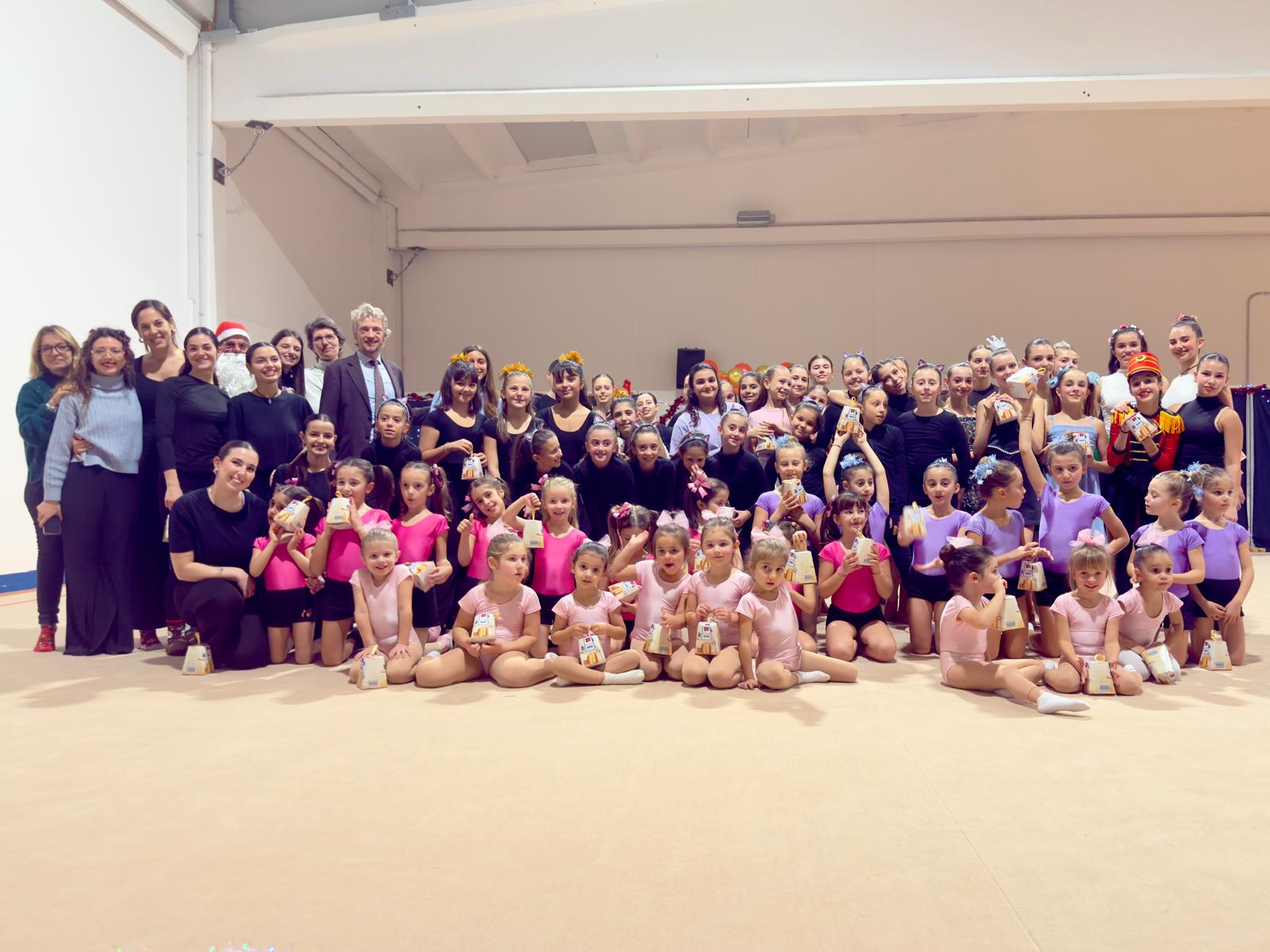 Durante gli allenamenti si imparano a utilizzare tutti gli attrezzi (fune, palla, cerchio, nastro, clavette) e si studiano gli elementi tecnici, dal più semplice al più complesso. Ogni conquista nasce da un lavoro attento e progressivo. Allo stesso tempo si lavora sulla musica, sull’espressività e sul ritmo, perché la ginnastica non è solo tecnica, ma anche emozione e capacità di comunicare.