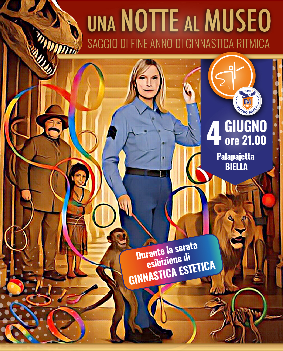 Il tema di quest’edizione, “Una Notte al Museo”, promette emozioni e spettacolo: tutte le ginnaste della ritmica e della ginnastica estetica di gruppo si esibiranno con le loro composizioni, frutto di un anno di lavoro, passione e crescita.